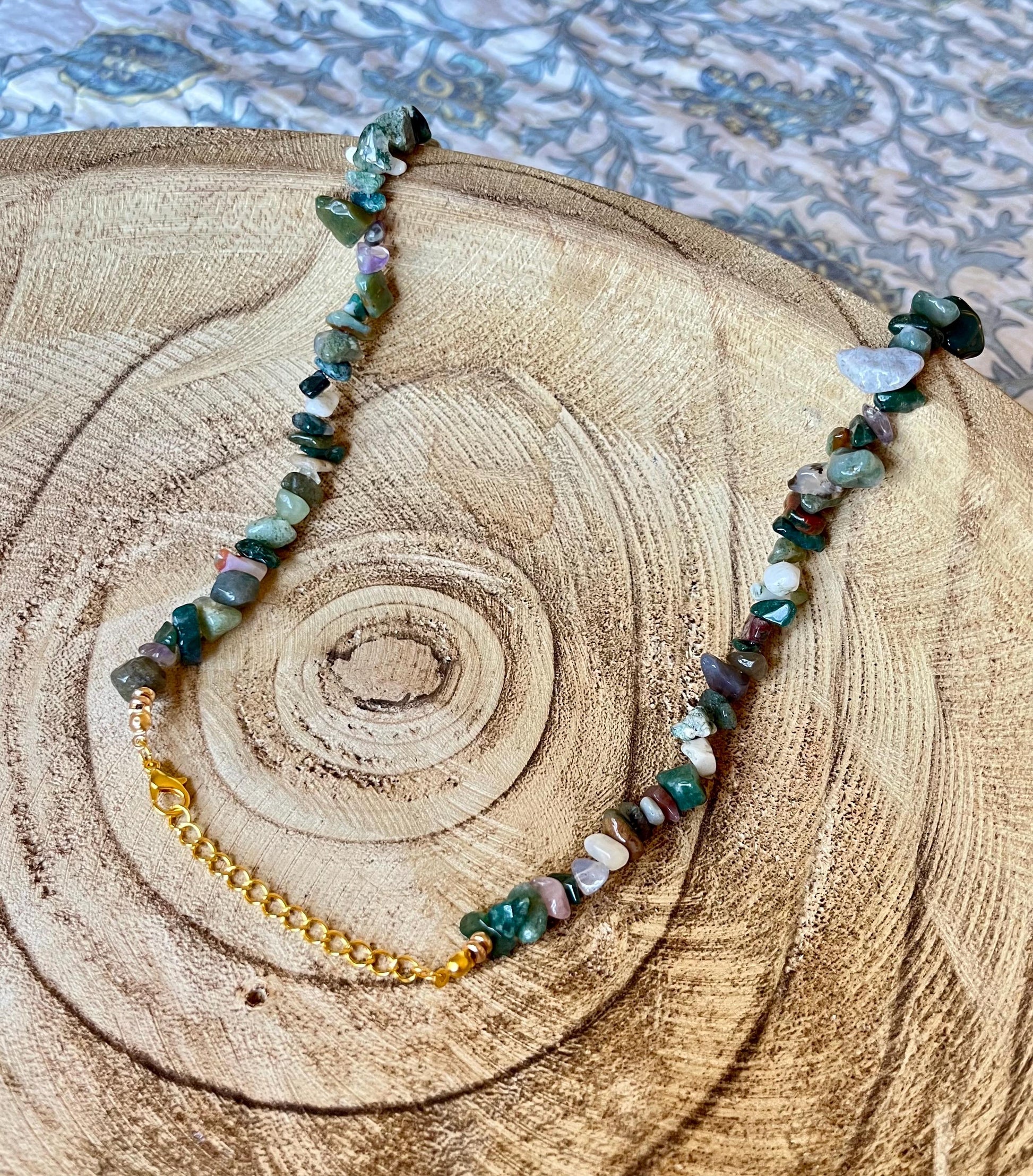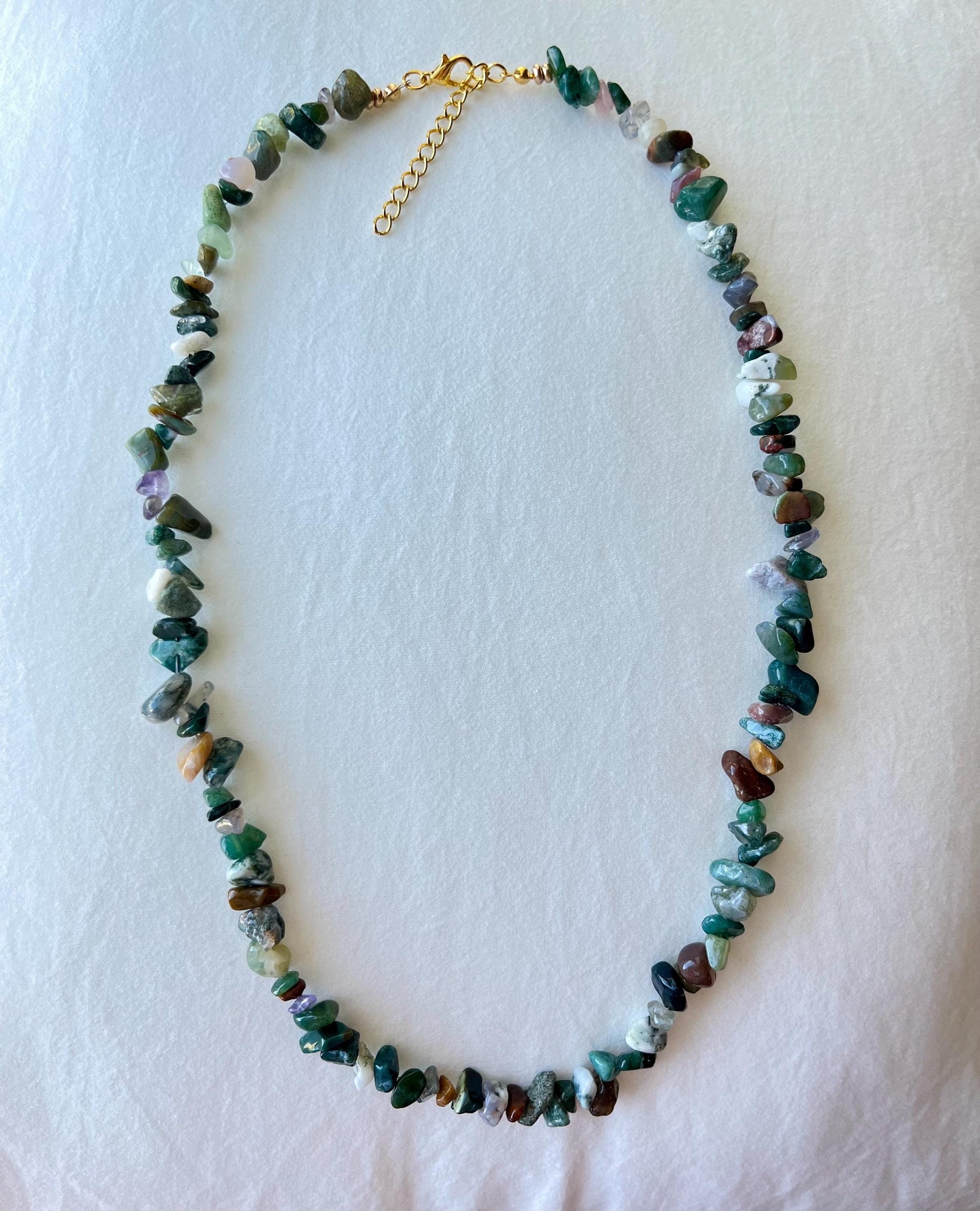 Mystic Earth – Gemstone Chip Necklace with 18k gold clasp and extender | Natural Stone Boho Statement Jewelry