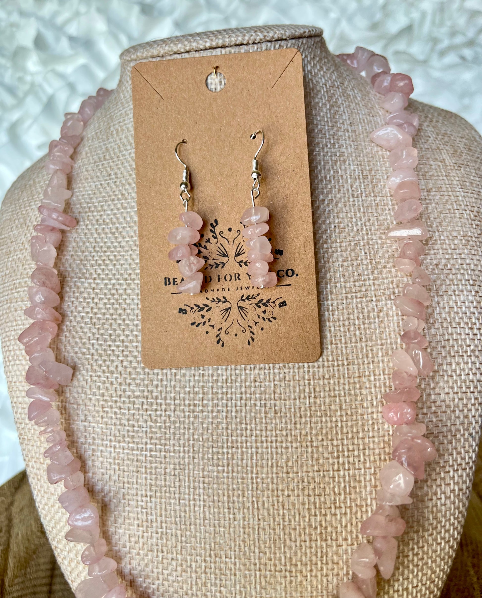 Our Soft Serenity rose quartz natural gemstone drop earrings are the perfect addition of elegance and add a natural touch to your collection!