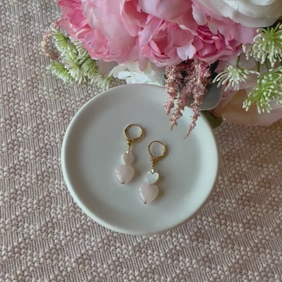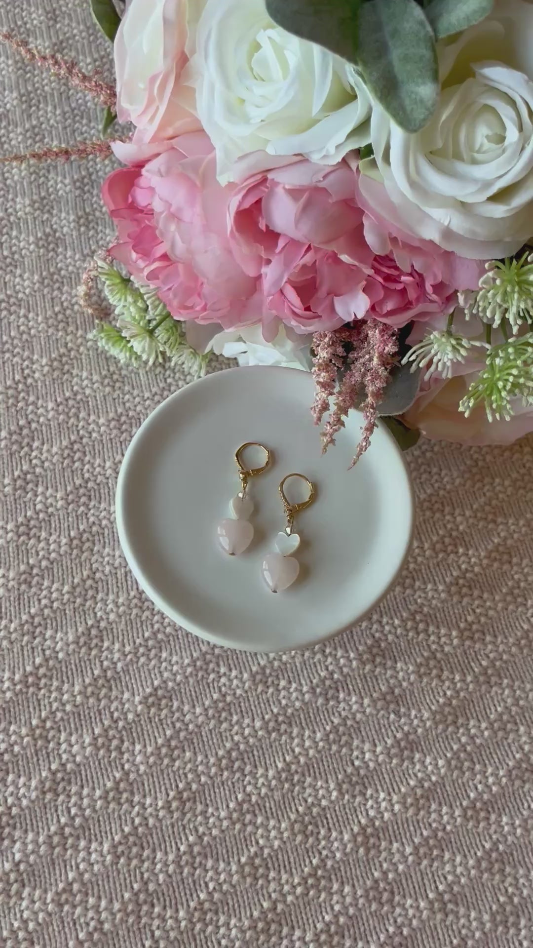 Delicate and timeless, the True Love Earrings feature soft rose quartz heart gemstones paired with luminous mother-of-pearl heart accents, finished with gold-tone leverback closures for a subtle touch of sparkle. Symbolizing love, compassion, and connection, these romantic drops are perfect for Valentine’s Day, anniversaries, bridal moments, or everyday wear when you want something truly meaningful.